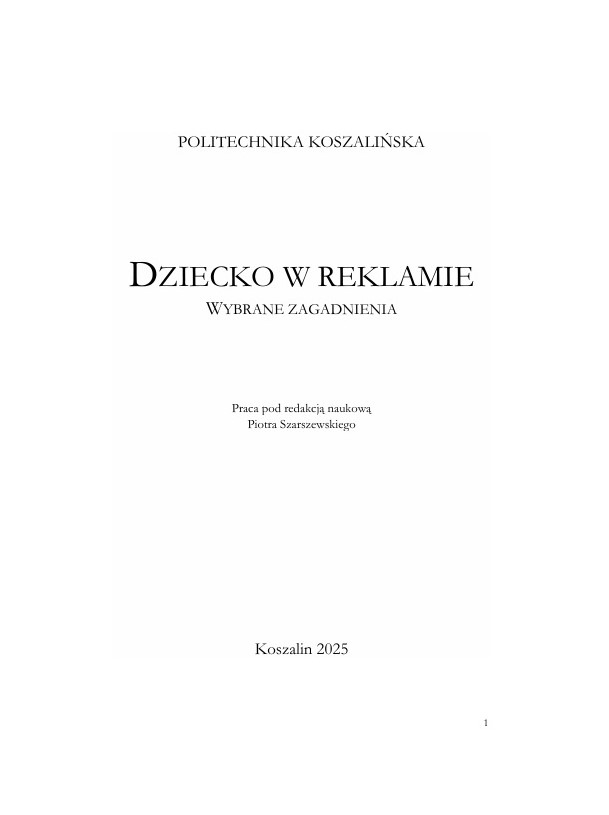 Ukazała się monografia naukowa „Dziecko w reklamie. Wybrane zagadnienia” (Politechnika Koszalińska, 2025) pod redakcją naukową Piotra Szarszewskiego. W publikacji znalazł się rozdział autorstwa dr. Pawła Drembkowskiego pt. „Dziecko jako element przekazu reklamowego – aspekty prawne i etyczne w świetle polskich i europejskich regulacji”. Opracowanie stanowi analizę krajowych i unijnych standardów ochrony małoletnich w przekazie reklamowym oraz granic odpowiedzialności reklamodawców w dobie mediów cyfrowych.